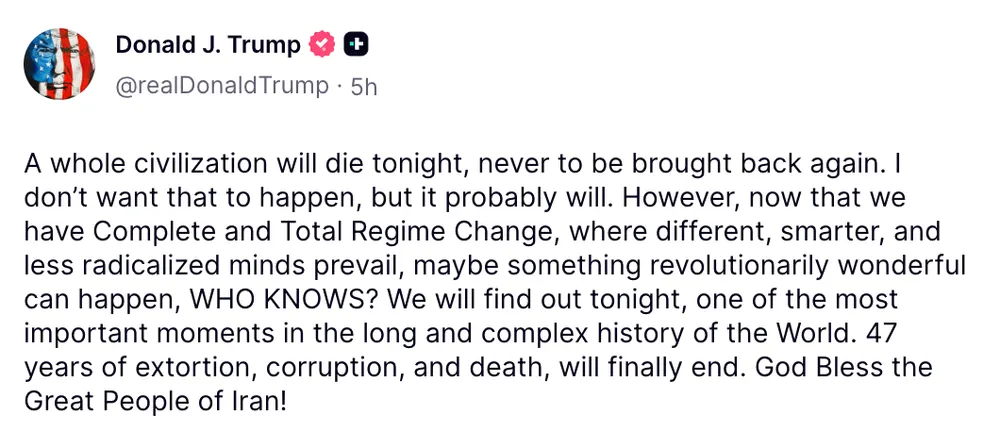 It makes me feel ill to even paste those images into the same post as the beautiful images and sentiments from Artemis. The president of the United States has backed himself into a corner by attacking Iran with no plan at all and no understanding of the consequences. He is pathologically unable to admit fault or back down, has never in his life faced consequences for his horrific actions, and is the puppet of the more competent authoritarians that he admires, so the United States seems to be on track to do something truly horrible tonight. Whether that means nuclear weapons or “just” war crimes using more traditional weapons remains to me seen.